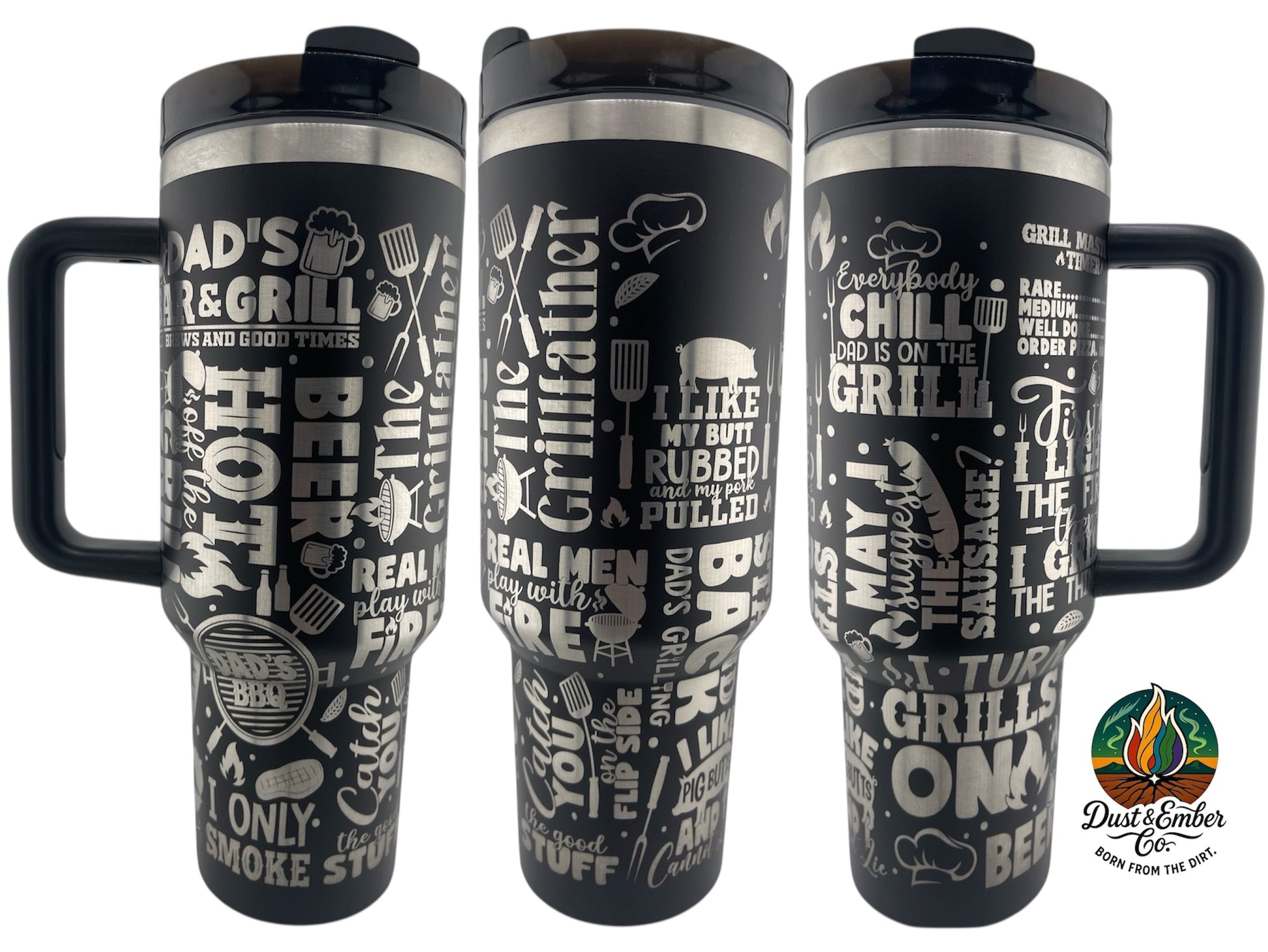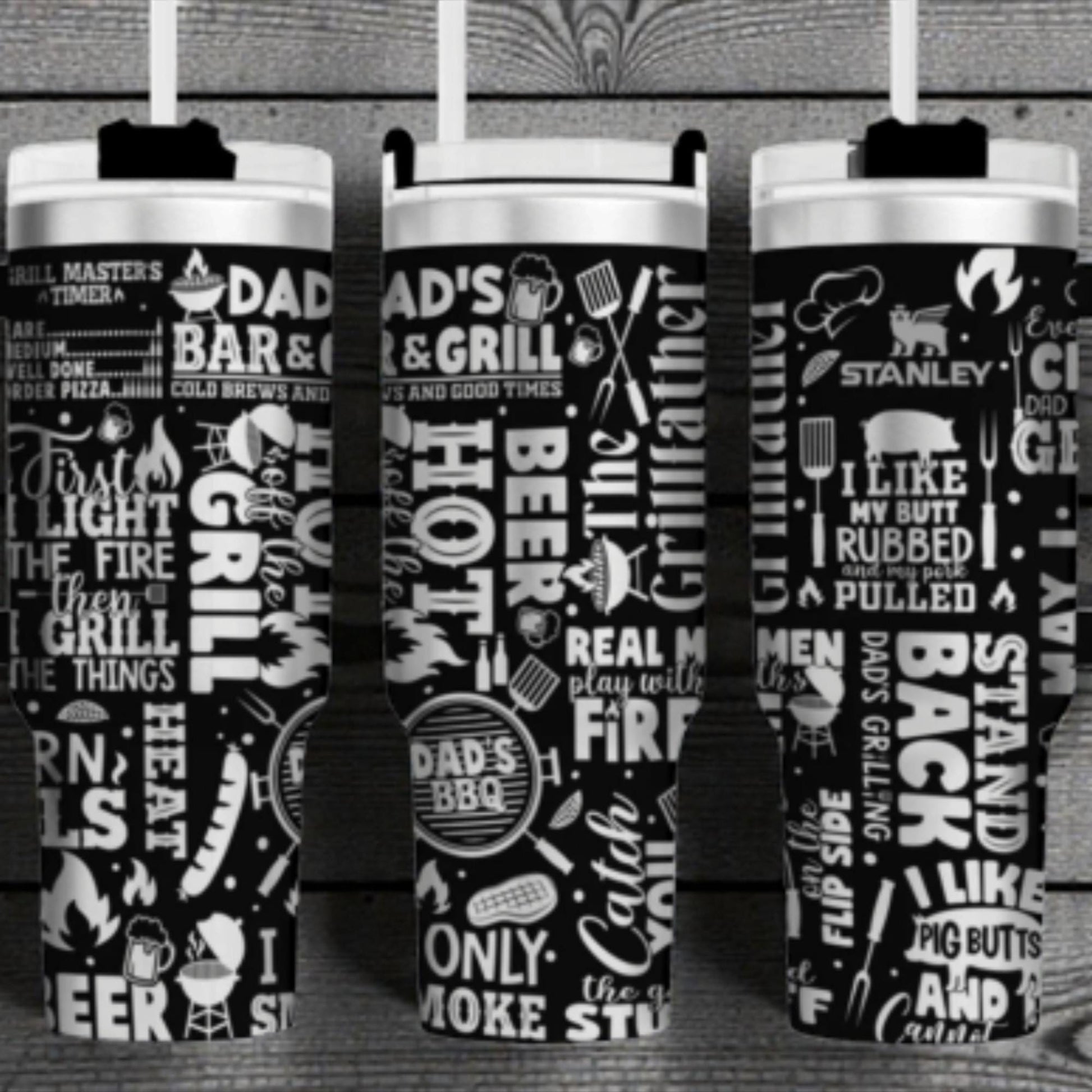 Perfect for Father’s Day, backyard BBQs, or just sipping in style, this wrap fits 20oz handled tumblers and brings the heat with bold white graphics on a sleek black background. Whether your dad’s a pitmaster or just loves a good laugh, this mug is a guaranteed hit.