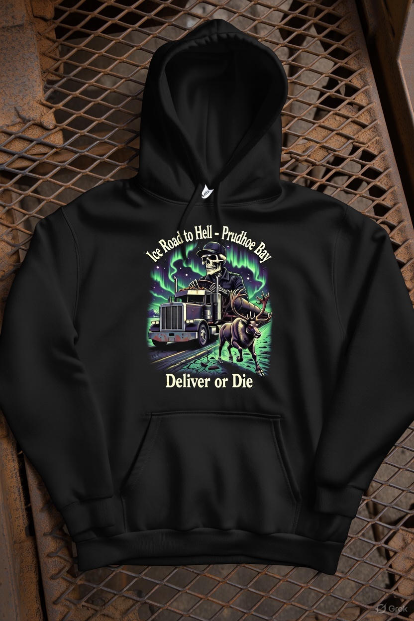 Ice Road to Hell Hoodie – Prudhoe Bay Deliver or Die | Alaska Ice Road Trucker Skeleton Hoodie