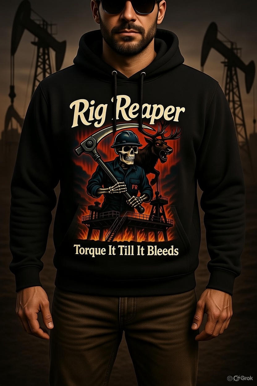 Rig Reaper Hoodie – Torque It Till It Bleeds | North Slope Oilfield Skeleton Roughneck Hoodie