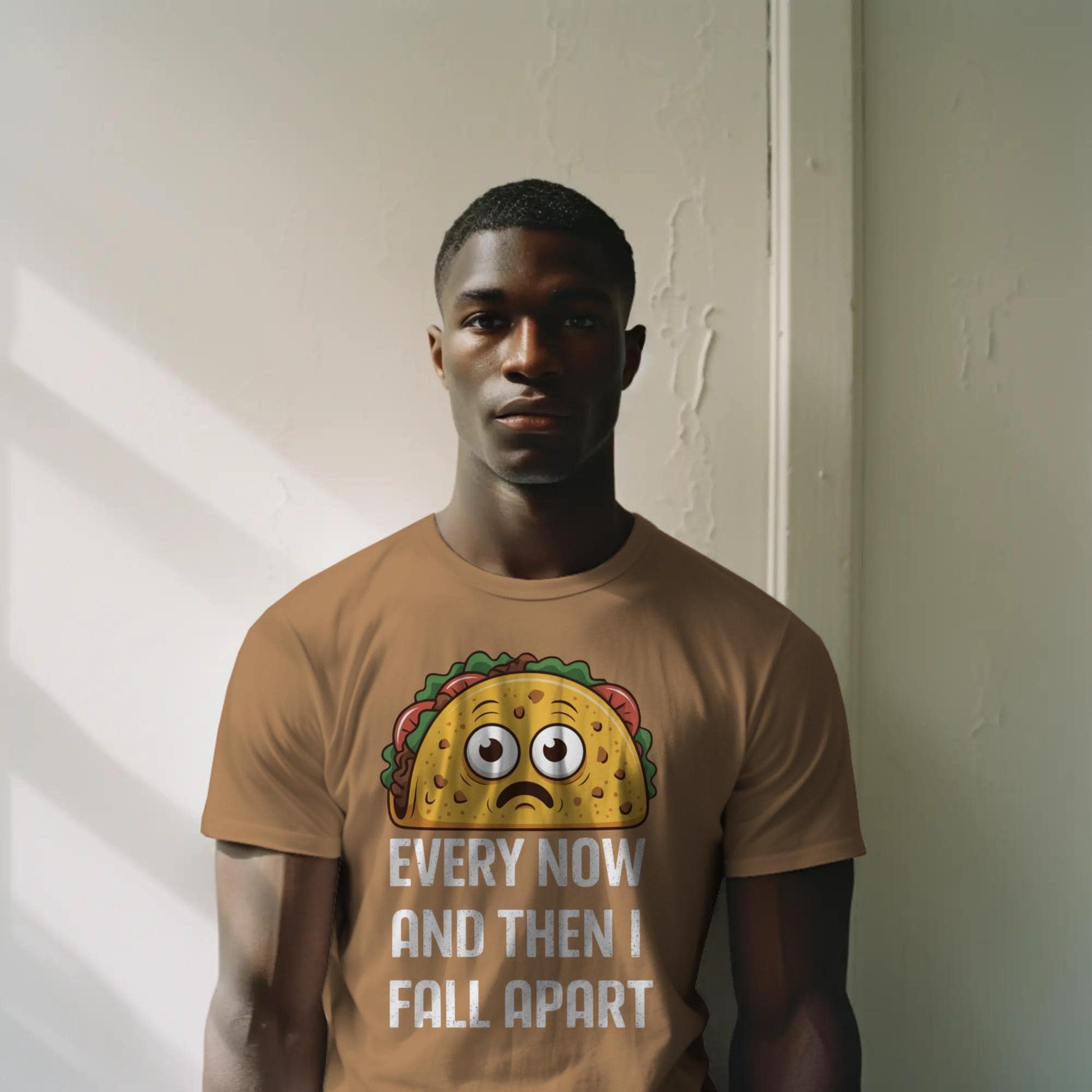 Sad Taco T-Shirt – “Every Now and Then I Fall Apart” – Funny Food Pun Tee for Mexican Food Lovers