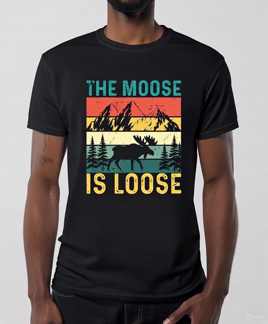 This hilarious retro-style t-shirt features a bold distressed design with a wandering moose silhouette against striped sunset mountains, pines, and that classic punchline: "THE MOOSE IS LOOSE." Perfect for anyone with a sense of humor who loves Alaska, wildlife, camping, hiking, or just making people smile! The vintage distressed look gives it that worn-in, favorite-tee vibe right out of the box. Great conversation starter on vacations, at the cabin, or just running around town. Printed with premium DTF (Direct-to-Film) transfers for vibrant, crack-resistant colors that hold up wash after wash.